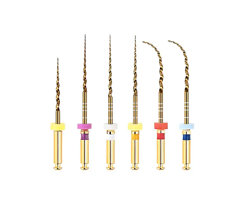 Features ~ Use of High quality Golden NiTi material with Heat Activation technology Greater resistance to cyclic Fatigue Triangular cross section enabling higher cutting efficiency Non cutting tips design helps prevent the risk of apical transportation Variable Taper design makes it easier to bring out debris and preserve the dentin.